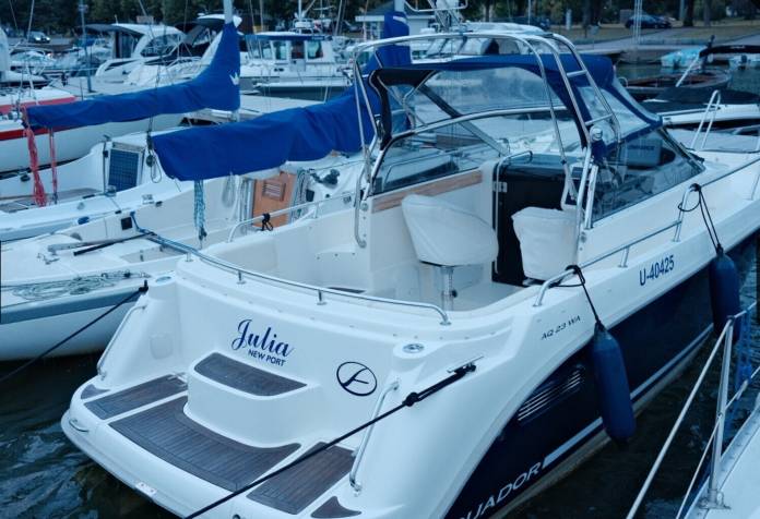 Välbyggd walkaround modell från Finska kvalitetsmärket Aquador. Exklusiv design i kombination med smart planlösning kännetecknar 23 WA. Här rör man sig ledigt runt hela båten tack vare fina däcksytor. Stort akterdäck med soffa och vändbara stolar. Hytten är rymlig och här sover två vuxna och ett barn bekvämt. Utmärkt båt för dagsturer med sol och bad.