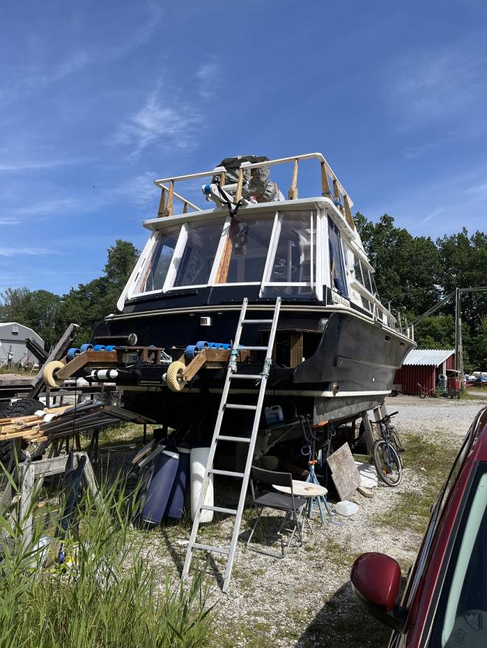 Glömde tillägga : Plastglas partiet i akter, med skjutbara dörrar blev gjorda nu i maj mån. ,och att propelleraxel koppling, måste efter