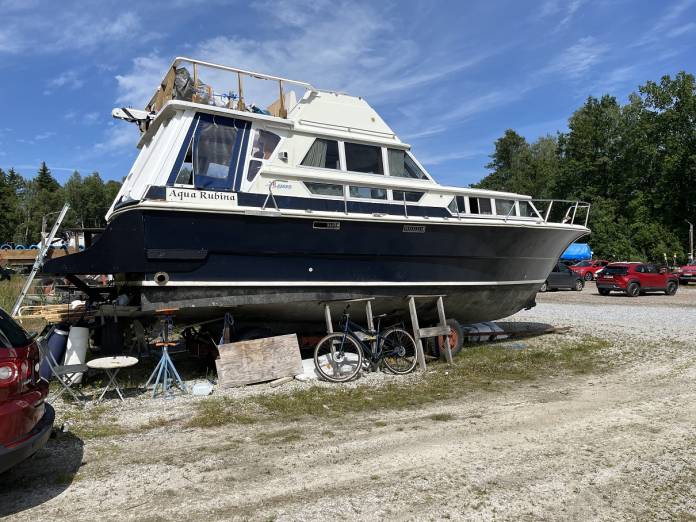 etc...... mycket nytt, bla nav + plotter/ ekol .( ca 13000) Båtens bägge backslag är uttagna o renov. till topp skick förra året ( ca 25000 kvitto finnes) Båten står på land, därför en förfrågningar har gjorts om hon kan trailas, ( går utmärkt, gjorde en lång tur från Göteborg till Grythem på Trailer )