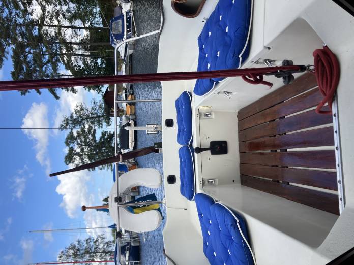 Båten är i bra skick och redo för nya äventyr. Den har inte använts mycket de senaste åren, men startar alltid och känns stabil och pålitlig – perfekt för både nybörjare och vana seglare.