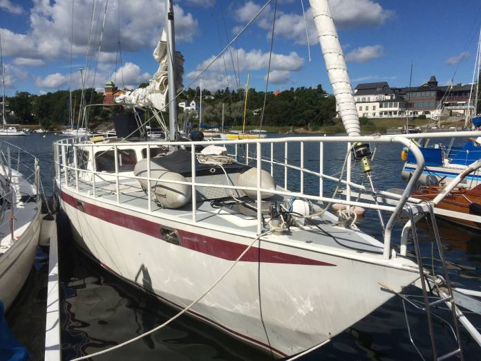 Isolerat stålskrov av Bruce Roberts, delvis inredd. Mycket nytt t ex bogpropeller, autopilot, vattenburen värme (Alda), tryckvattenpump, varmvattenberedare, eltoalett med avloppstank. Kallvattentank 500 liter, dieseltankar 700 liter, spis m ugn. Båten är vinterisolerad .Båten är i stort sett färdig att bo i. Pris 450.000 eller bud.