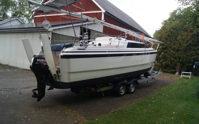 Mcgregor 26x i mycket bra skick säljes. Utrustning furlex med genua, storsegel med lazyjacks, spinnacker med spinnackerbom, tampar till förtöjning och två ankare med ankorline , kompressorkylbox, dieselvärmare, solcellpanel på ställning i akter samt litiumbatteri och 12/220 omformare, eltoalett med septitank och däckstömning, besiktigad trailer TK-trailern 2500kg,Suzuki fyrtakt 50 hk med elektroniskt stöldskydd och gps samt ekolod. En fantastisk båt som har ett djupgående på endast 30 cm med centerbordet uppe men med centerbord nere och ballasttankarna fyllda(700lit) seglar den riktigt bra i även i hård vind.