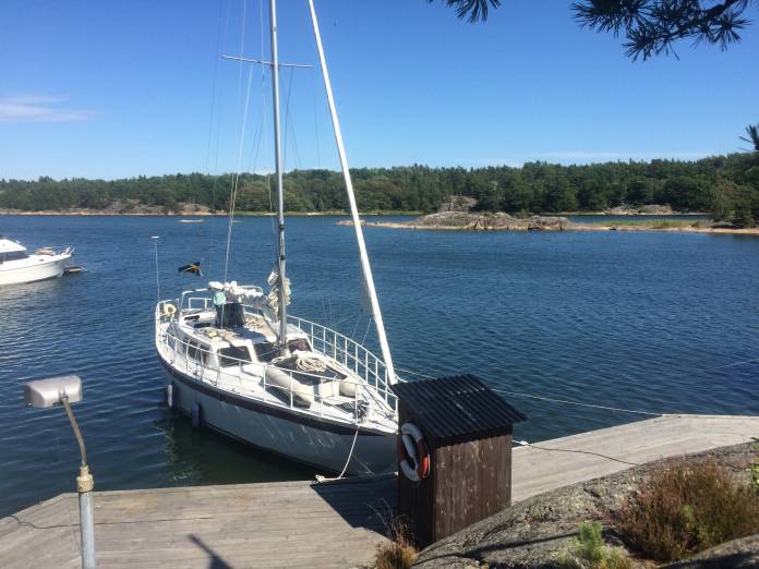 Isolerat stålskrov av Bruce Roberts, delvis inredd. Mycket nytt t ex bogpropeller, autopilot, vattenburen värme (Alda), tryckvattenpump, varmvattenberedare, eltoalett med avloppstank. Kallvattentank 500 liter, dieseltankar 700 liter, spis m ugn. Båten är vinterisolerad .Båten är i stort sett färdig att bo i. Pris 450.000 eller bud.