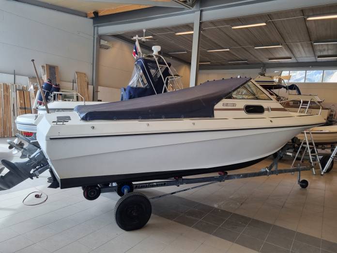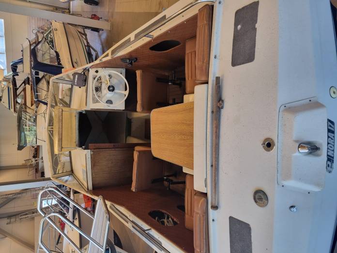 Nora 17 Dc Klassiker i bra bruksskick, sprucken i gelcoaten se bilder, motor nyservad och går bra, länspump med nivåvakt, GPS Garmin 172c, klar för sjösättning Längd: 5,2 m (17 fot) Bredd: 2m Djup: 0,6m Vikt: 980kg Kojplatser: 2st Motor: Volvo Penta AQ115 Drev: 100A Antal hk: 105 hk Toppfart: 27knop